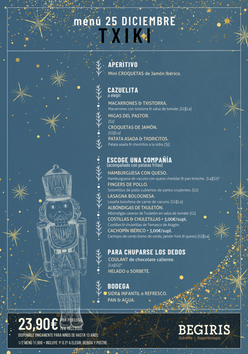 Hemos preparado este menú para celebrar el día más importante de las festividades de Navidad junto a tus seres queridos.