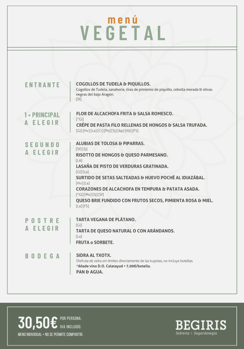 Podras disfurtas de nuestro menú de Sidrería de LUNES a DOMINGO tanto en el servicio de la comida como en el servicio de la cena.