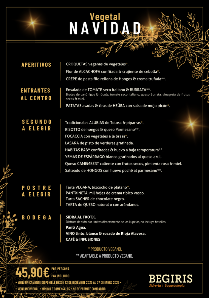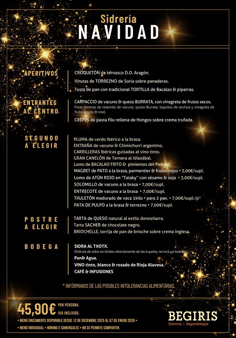 Menú único disponible los días 12,13,19 & 20 de diciembre.